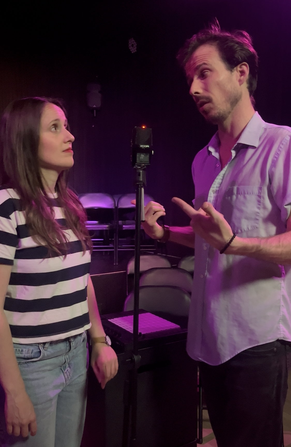 an experimental improv radio play with two players, too many characters, and a world built entirely from sound. Performed in the round, in the dark, and captured in spatial audio, each show unfolds in a dreamlike realm of risk and discovery, co-created by players and audience imaginations alike — playful, raw, surreal, and unlike anything you’ve heard before.